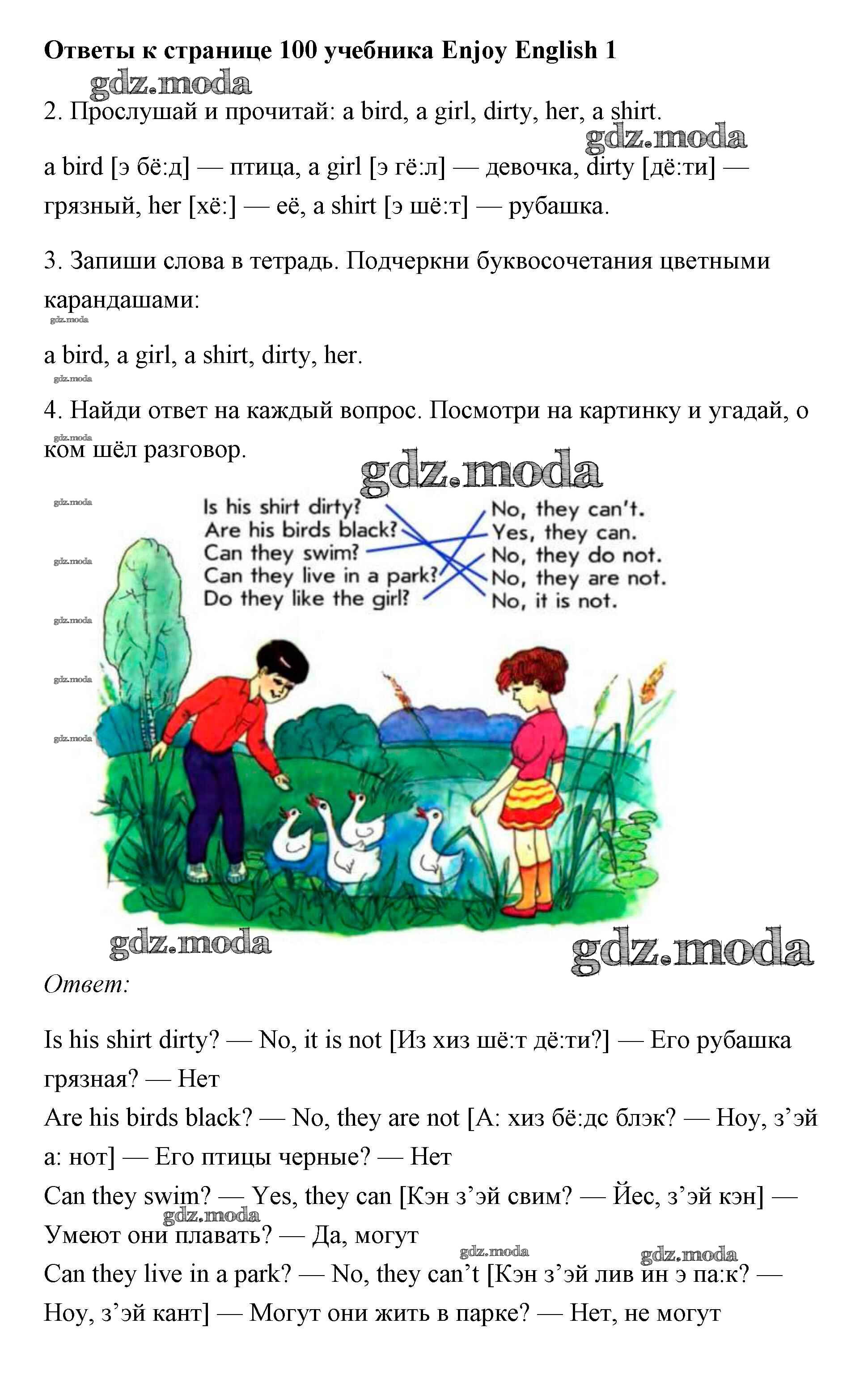 ОТВЕТ на задание № 100 Учебник по Английскому языку 1 класс Биболетова Enjoy English