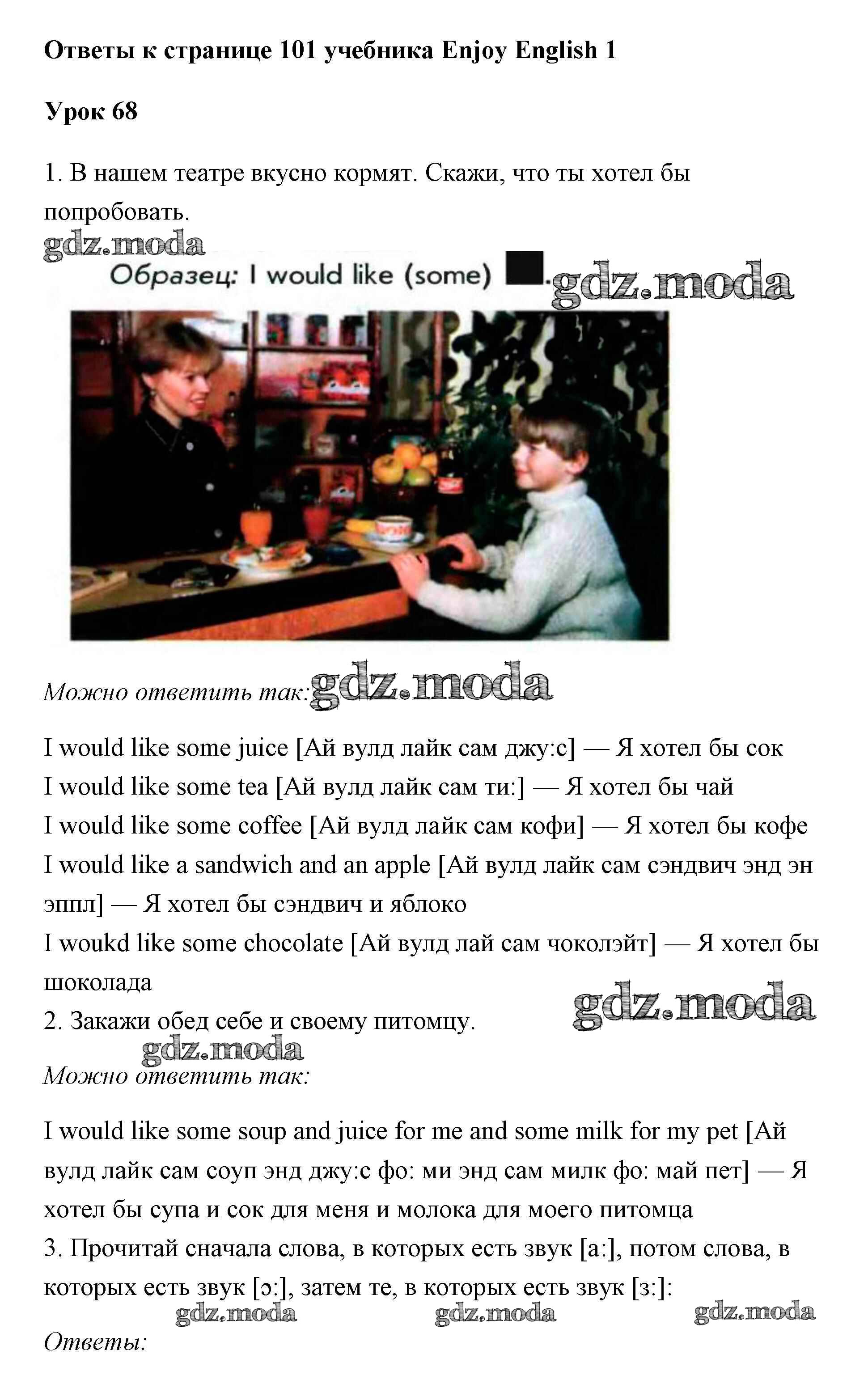 ОТВЕТ на задание № 101 Учебник по Английскому языку 1 класс Биболетова Enjoy English