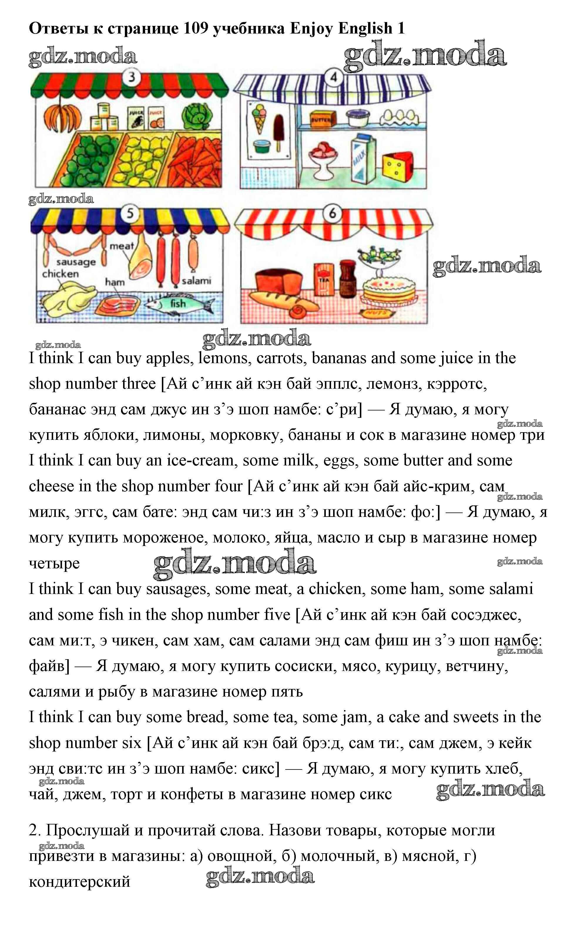 ОТВЕТ на задание № 109 Учебник по Английскому языку 1 класс Биболетова Enjoy English