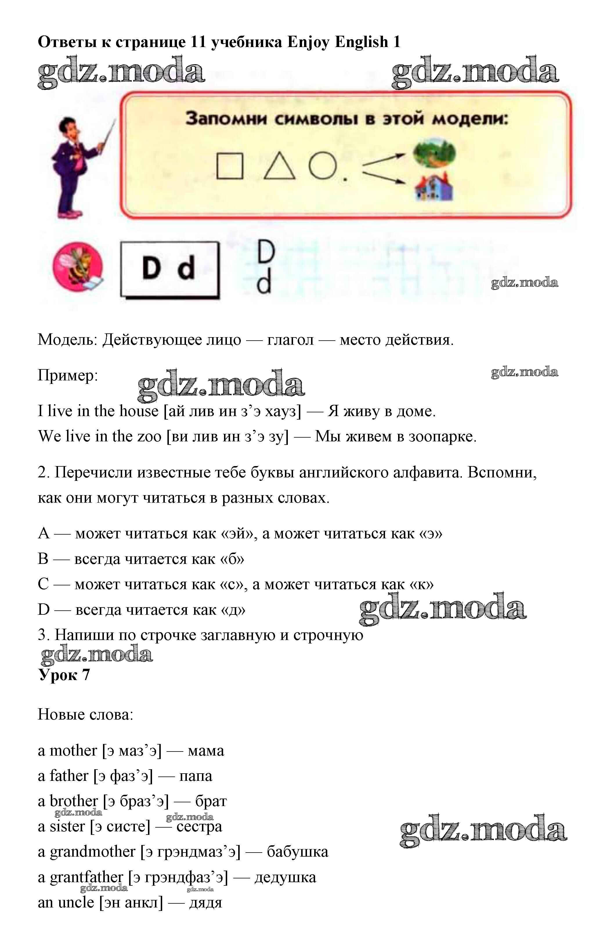 ОТВЕТ на задание № 11 Учебник по Английскому языку 1 класс Биболетова Enjoy English