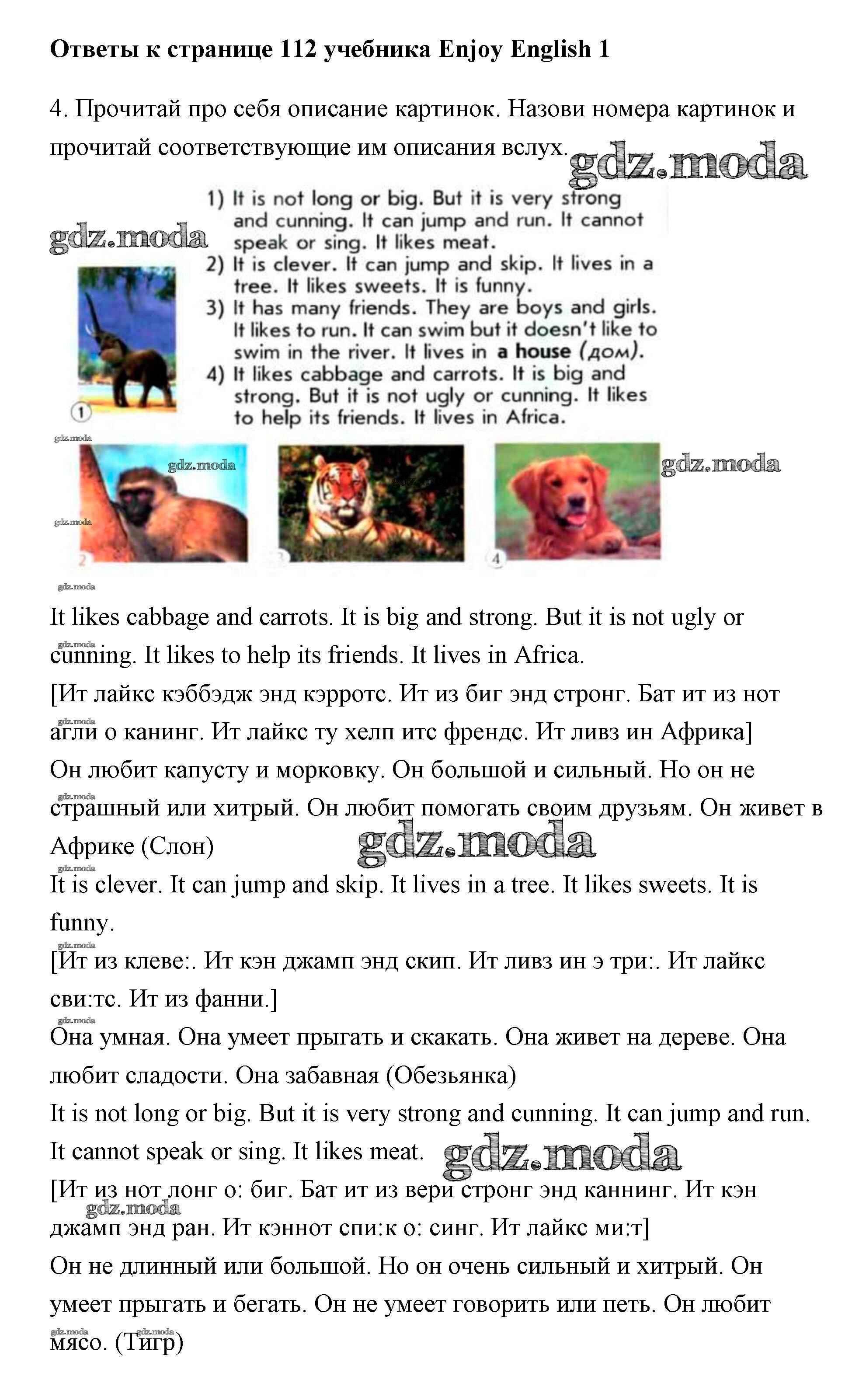 ОТВЕТ на задание № 112 Учебник по Английскому языку 1 класс Биболетова Enjoy English