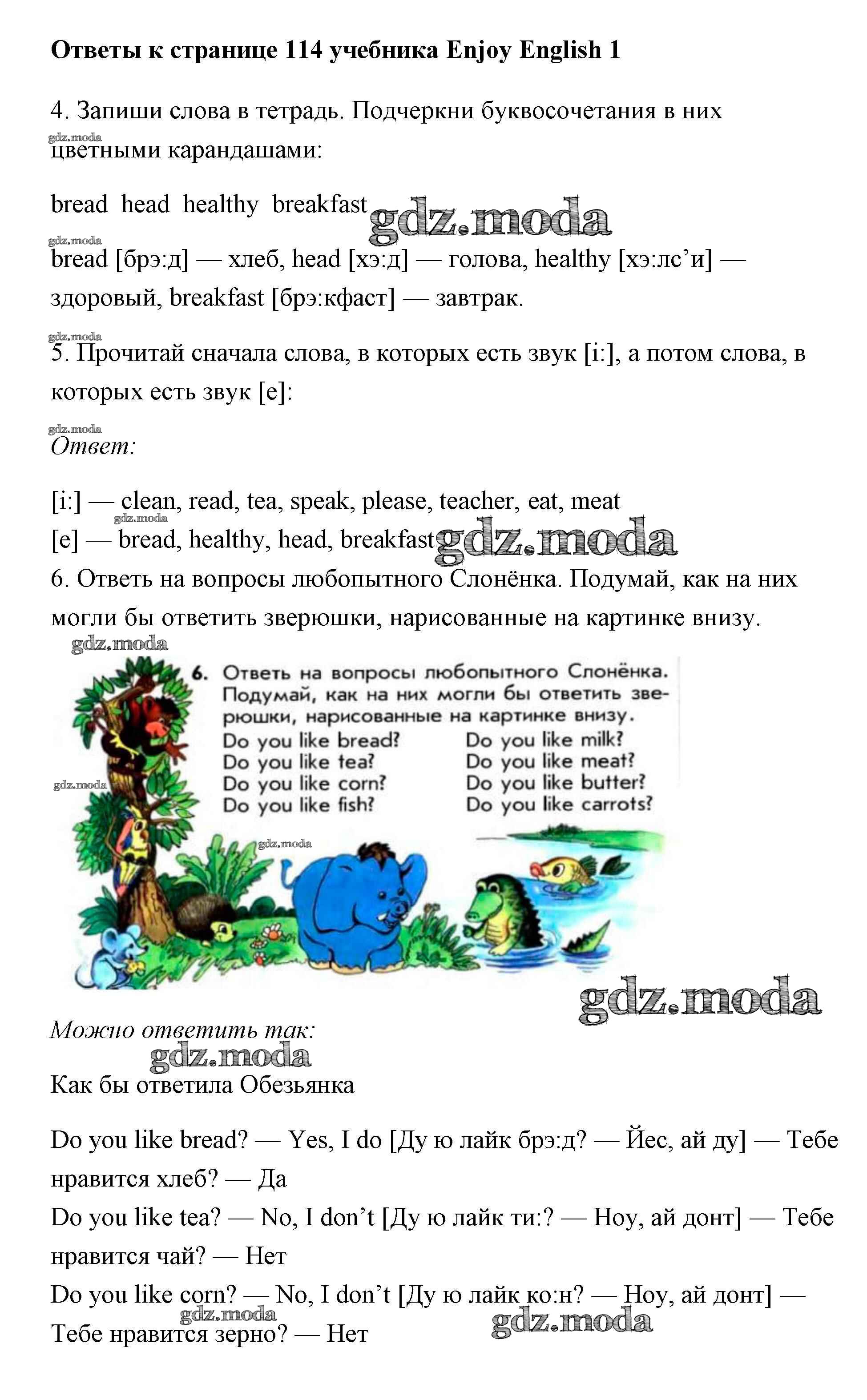 ОТВЕТ на задание № 114 Учебник по Английскому языку 1 класс Биболетова Enjoy English