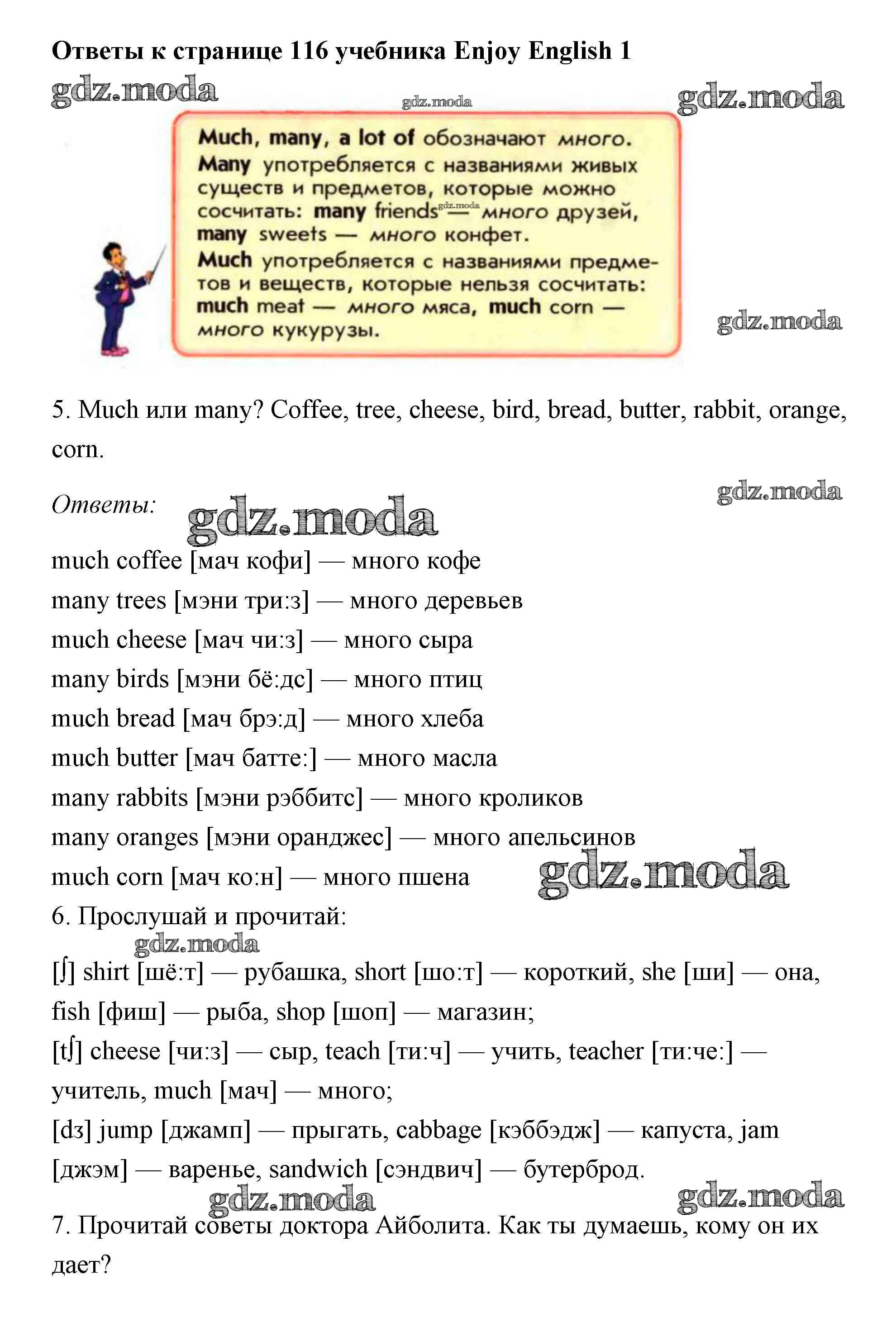 ОТВЕТ на задание № 116 Учебник по Английскому языку 1 класс Биболетова Enjoy English