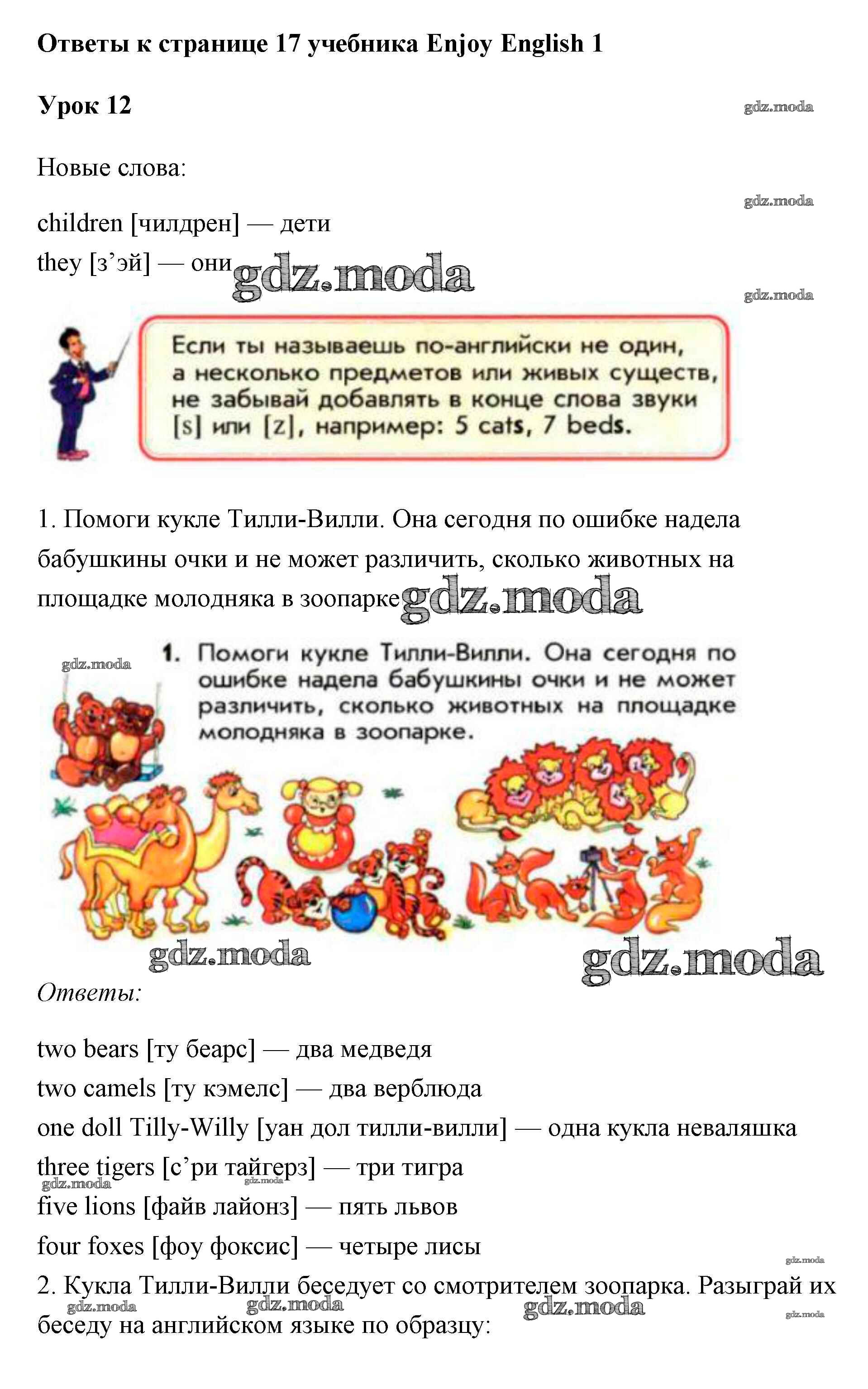 ОТВЕТ на задание № 17 Учебник по Английскому языку 1 класс Биболетова Enjoy English