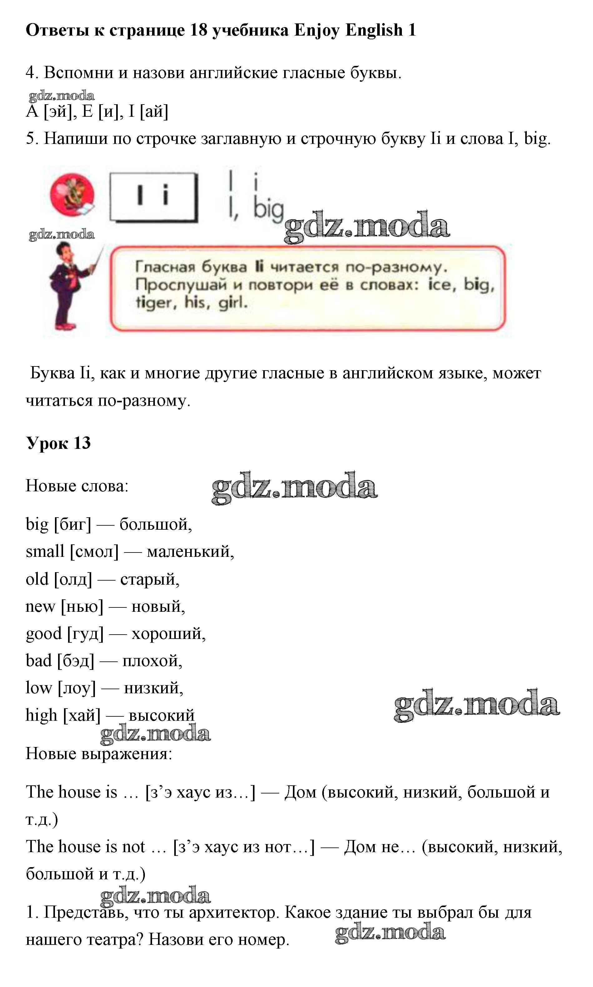 ОТВЕТ на задание № 18 Учебник по Английскому языку 1 класс Биболетова Enjoy English