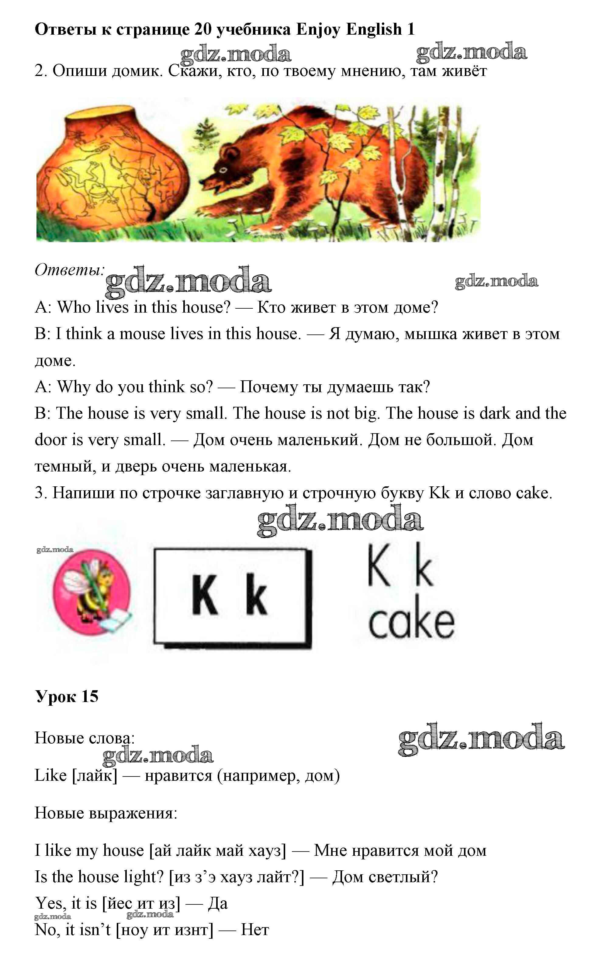 ОТВЕТ на задание № 20 Учебник по Английскому языку 1 класс Биболетова Enjoy English
