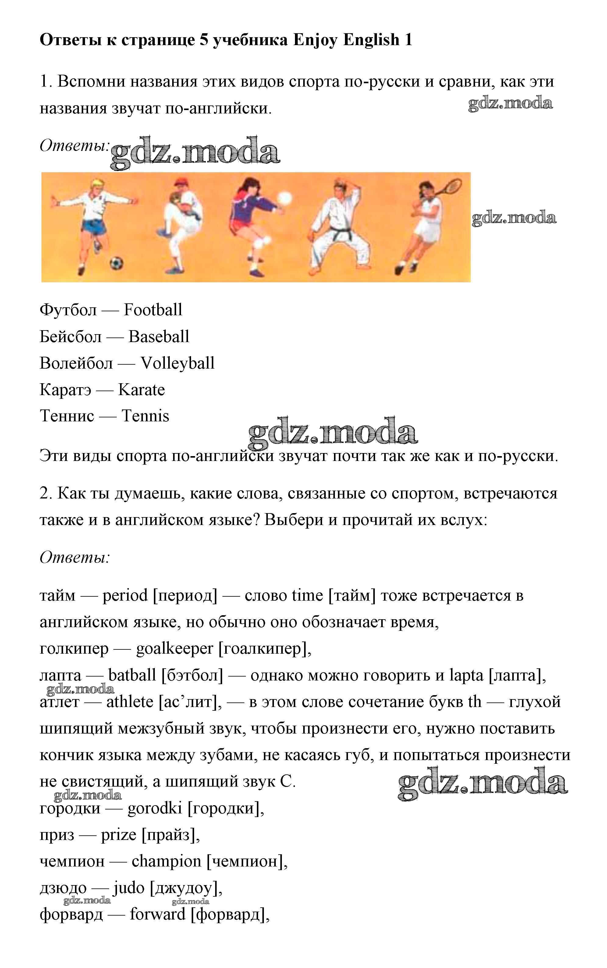 ОТВЕТ на задание № 5 Учебник по Английскому языку 1 класс Биболетова Enjoy English