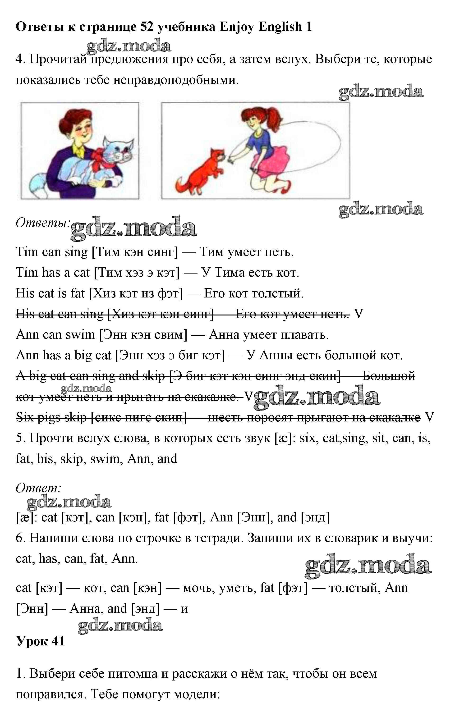 ОТВЕТ на задание № 52 Учебник по Английскому языку 1 класс Биболетова Enjoy English