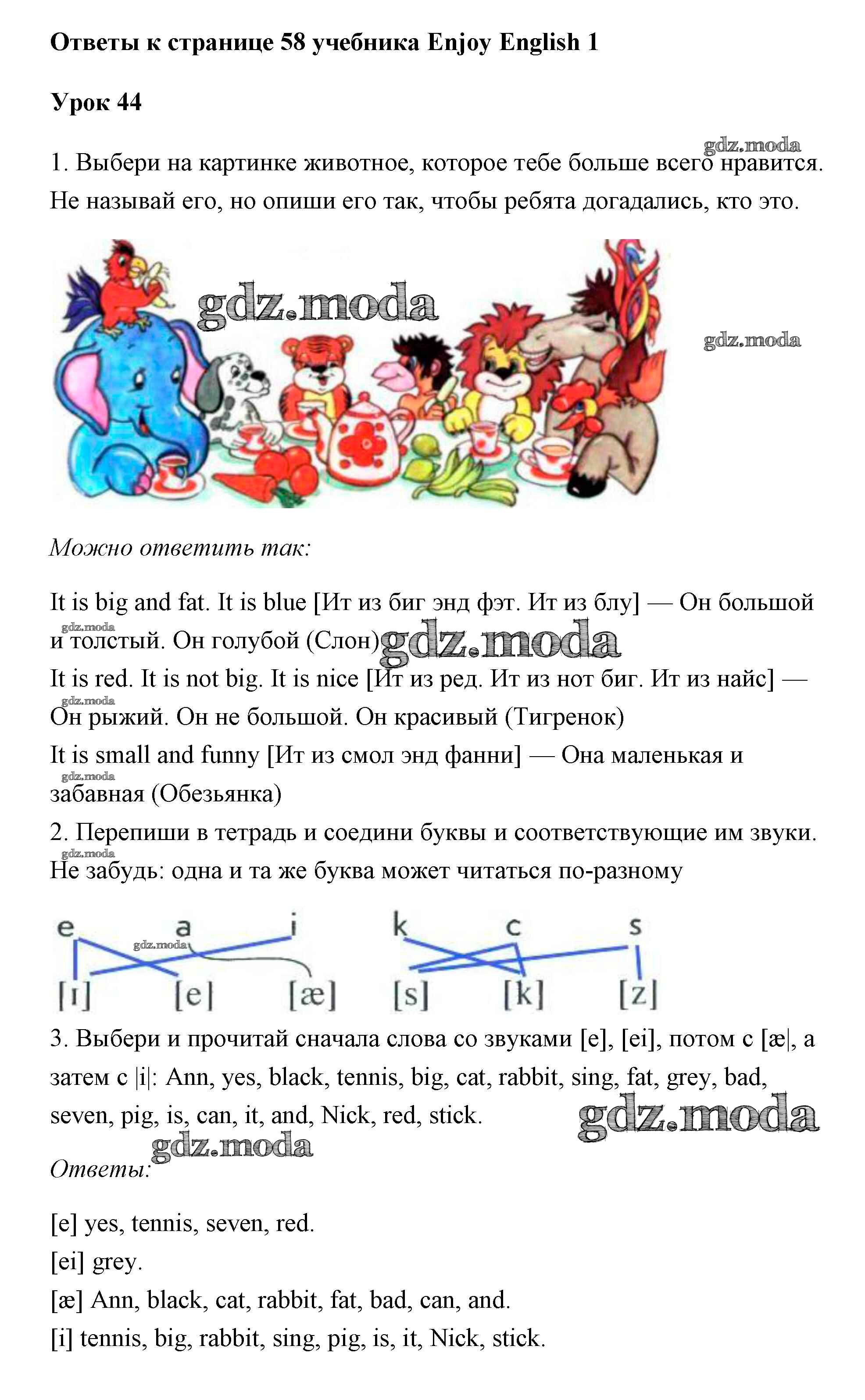 ОТВЕТ на задание № 58 Учебник по Английскому языку 1 класс Биболетова Enjoy English