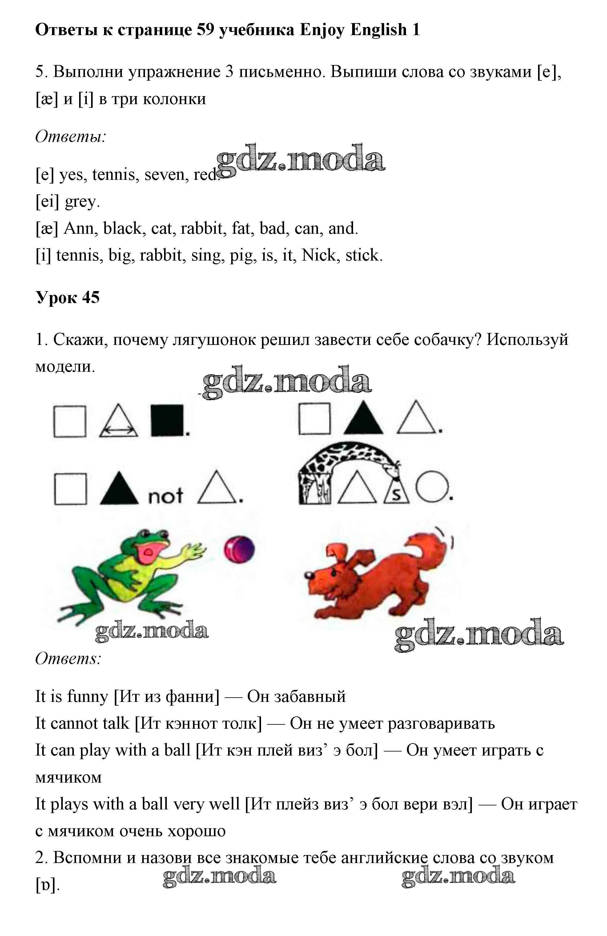 ОТВЕТ на задание № 59 Учебник по Английскому языку 1 класс Биболетова Enjoy English