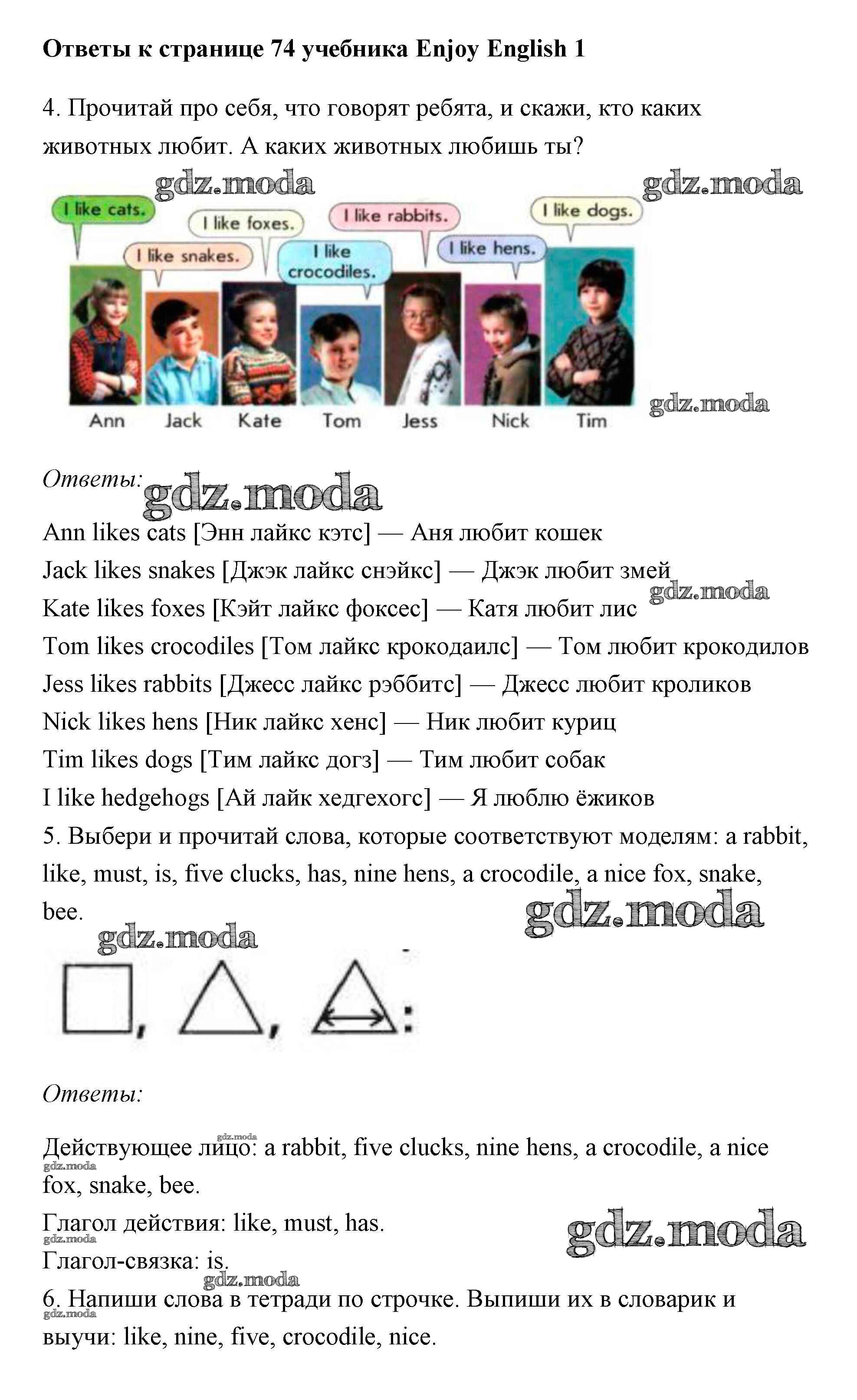 ОТВЕТ на задание № 74 Учебник по Английскому языку 1 класс Биболетова Enjoy English