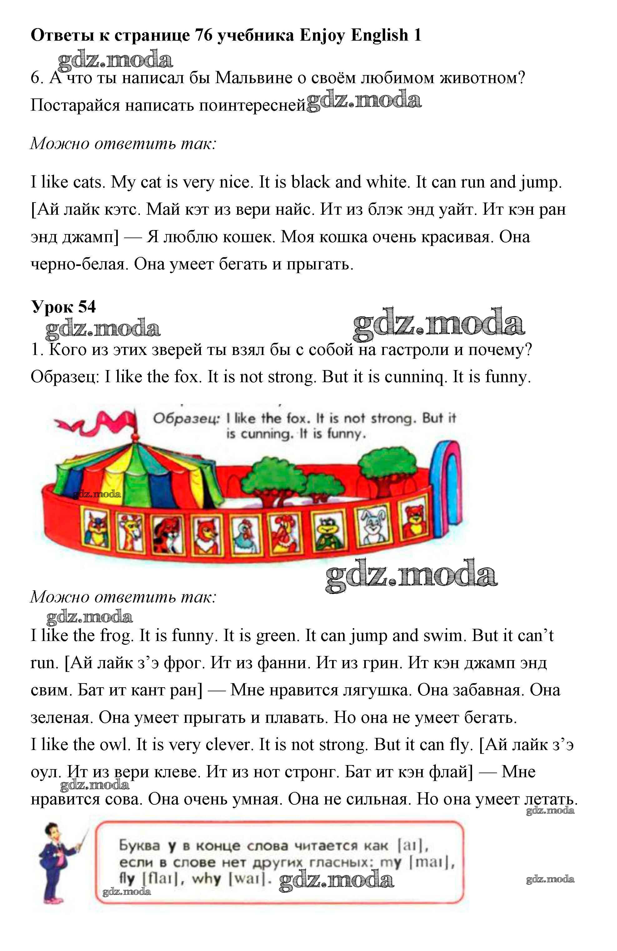 ОТВЕТ на задание № 76 Учебник по Английскому языку 1 класс Биболетова Enjoy English