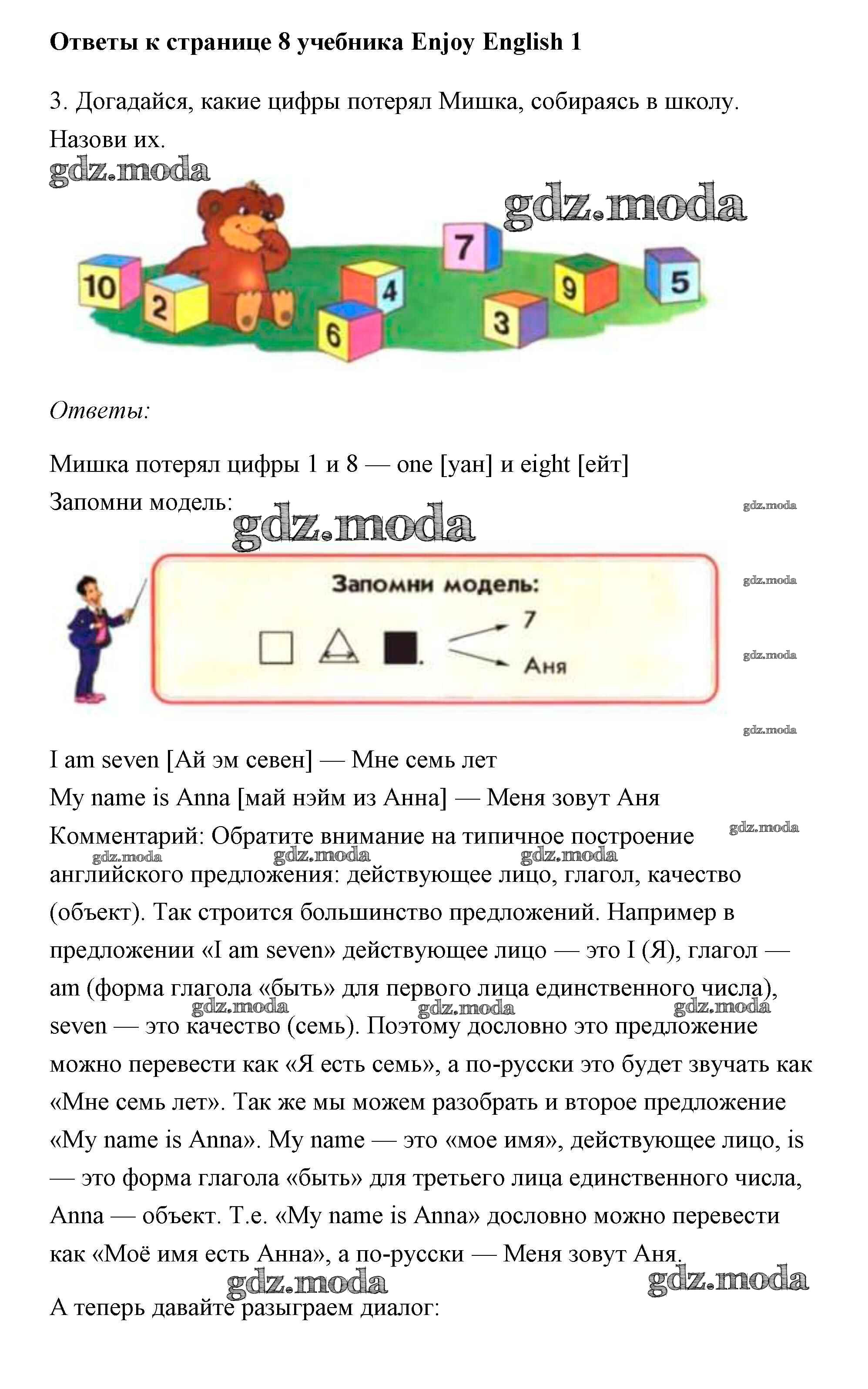 ОТВЕТ на задание № 8 Учебник по Английскому языку 1 класс Биболетова Enjoy English