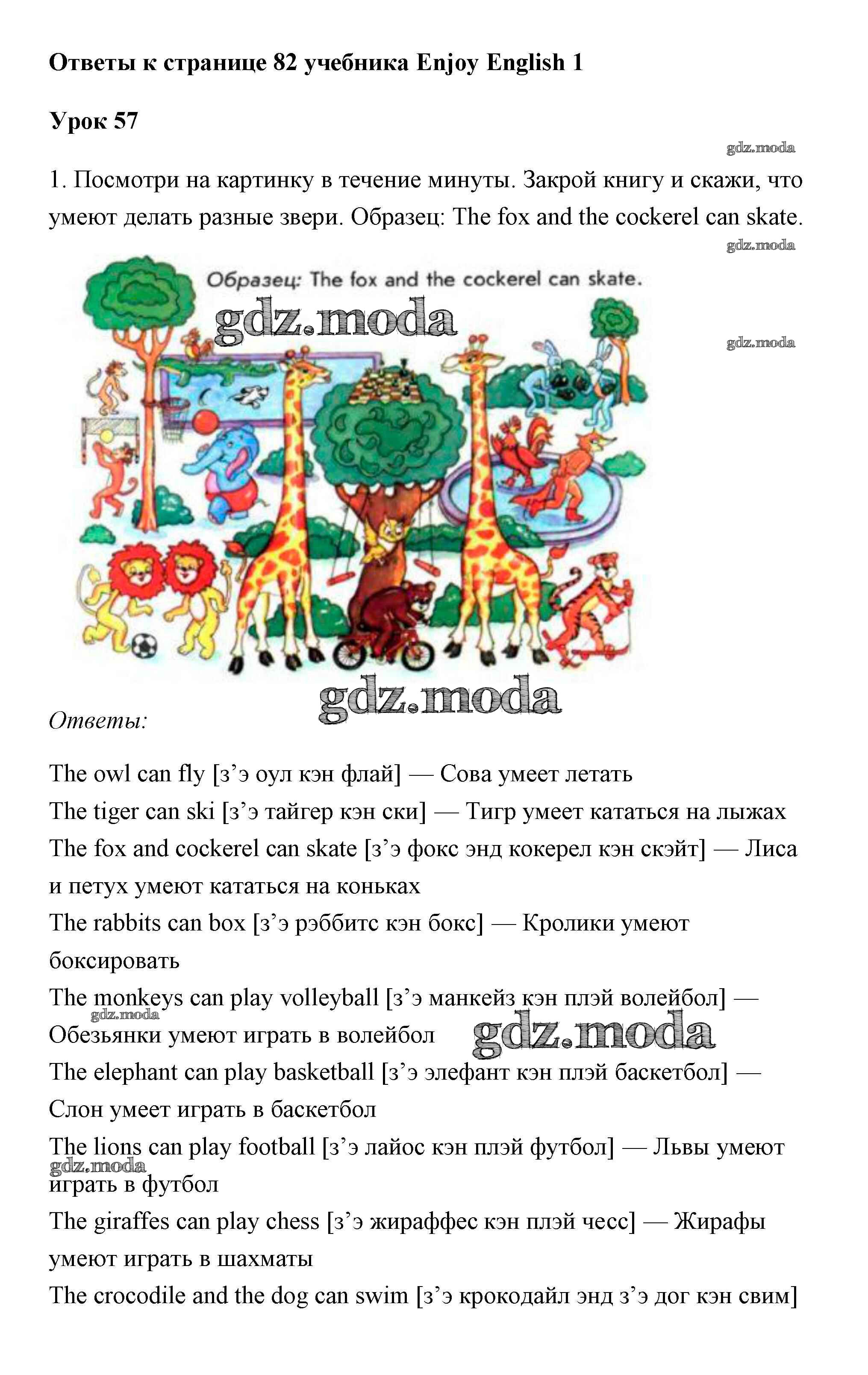 ОТВЕТ на задание № 82 Учебник по Английскому языку 1 класс Биболетова Enjoy English