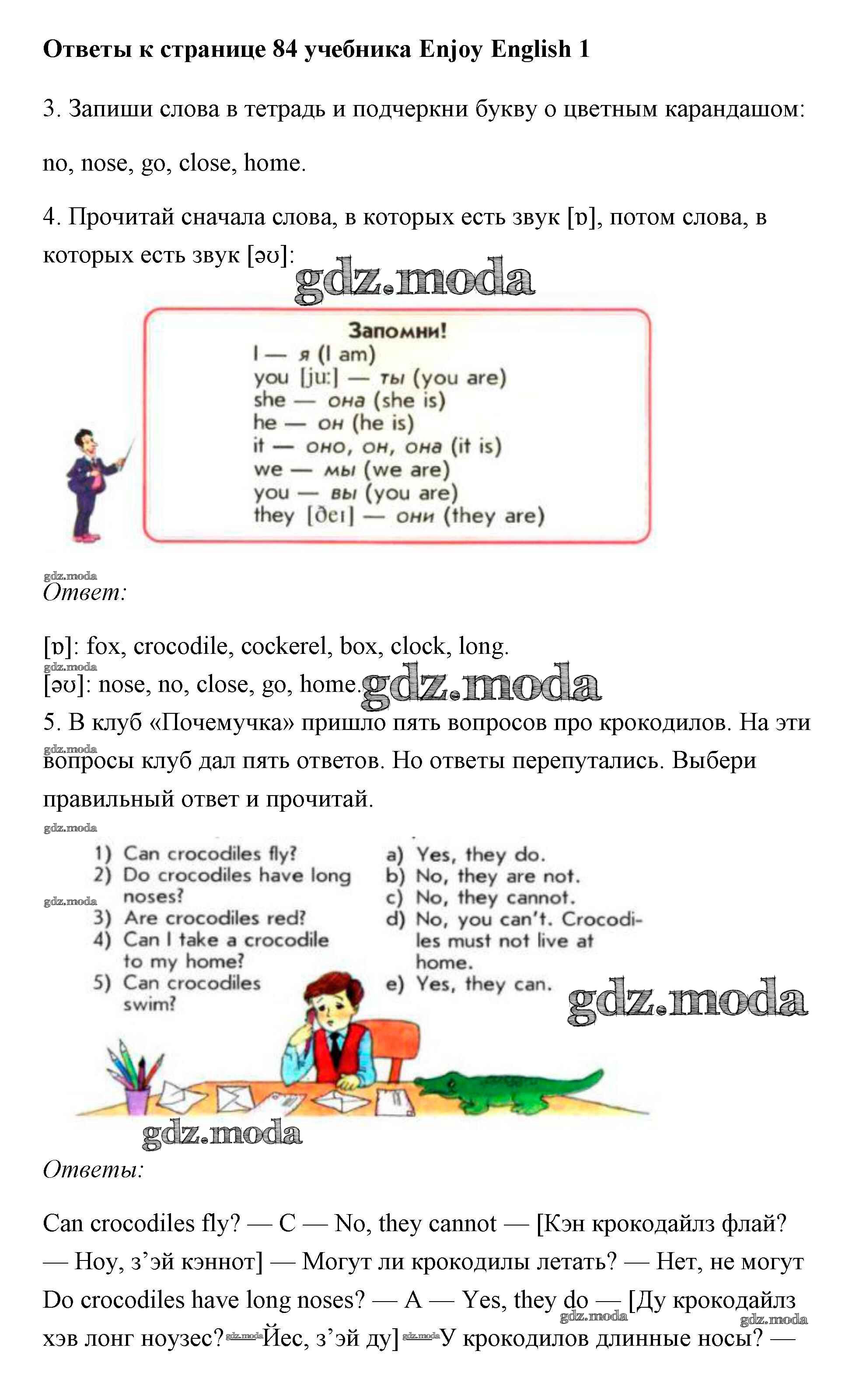 ОТВЕТ на задание № 84 Учебник по Английскому языку 1 класс Биболетова Enjoy English