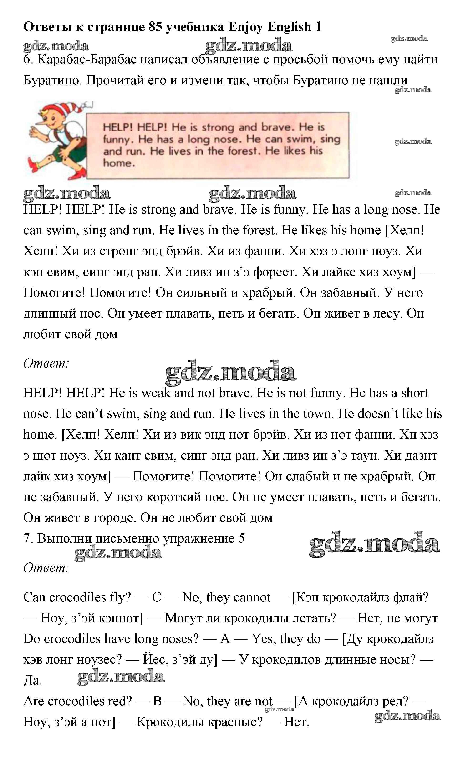 ОТВЕТ на задание № 85 Учебник по Английскому языку 1 класс Биболетова Enjoy English