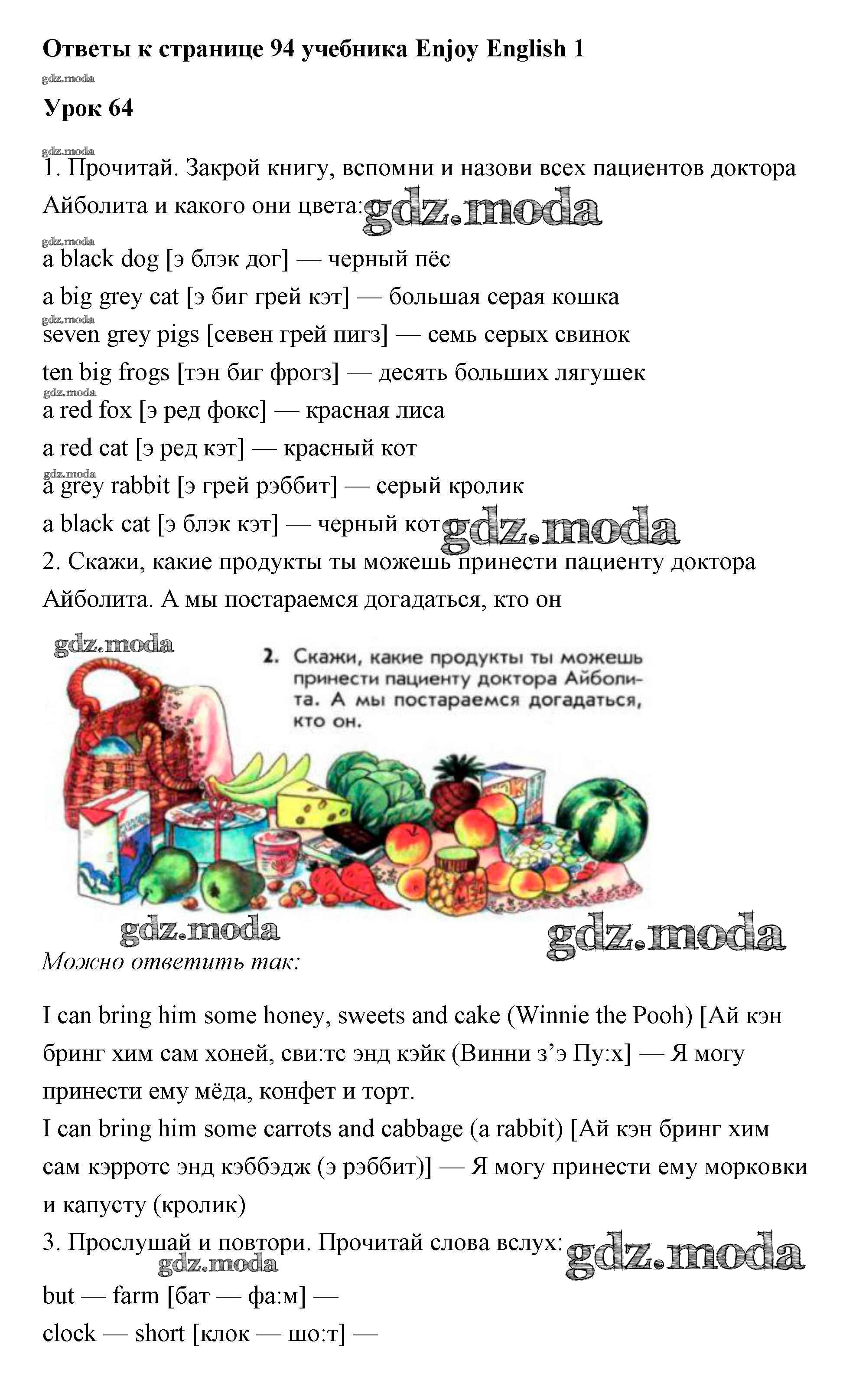 ОТВЕТ на задание № 94 Учебник по Английскому языку 1 класс Биболетова Enjoy English