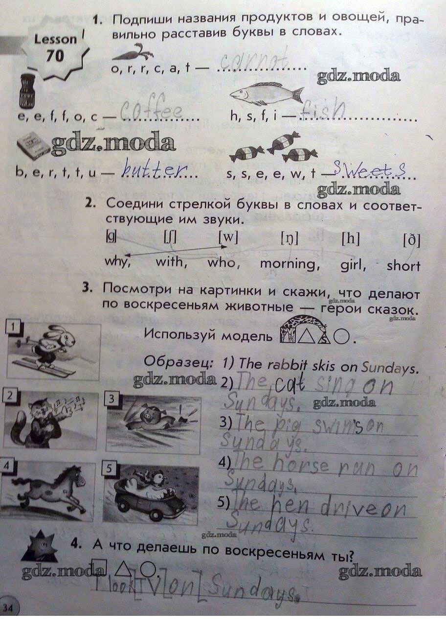 ГДЗ решение к заданию № 34 Английский язык 1 класс рабочая тетрадь Биболетова Аст/Астрель 2015 бесплатно на гдз.мода!
