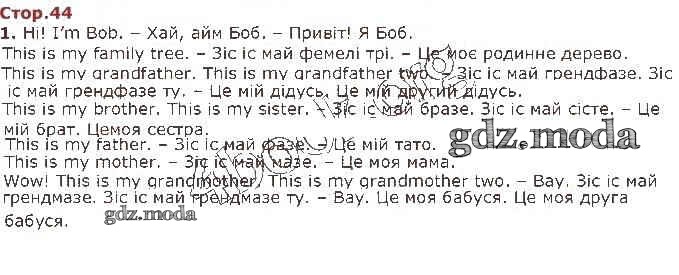 ГДЗ решение к заданию № 44 Английский язык 1 класс Карпюк Видавництво Астон, Видавництво Астон 2018, 2012 бесплатно на гдз.мода!