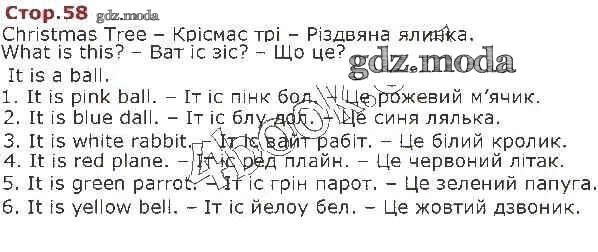 ГДЗ решение к заданию № 58 Английский язык 1 класс Карпюк Видавництво Астон, Видавництво Астон 2018, 2012 бесплатно на гдз.мода!