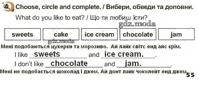 ГДЗ решение к заданию № 55 Английский язык 1 класс рабочая тетрадь Несвит Украина 2012 бесплатно на гдз.мода!