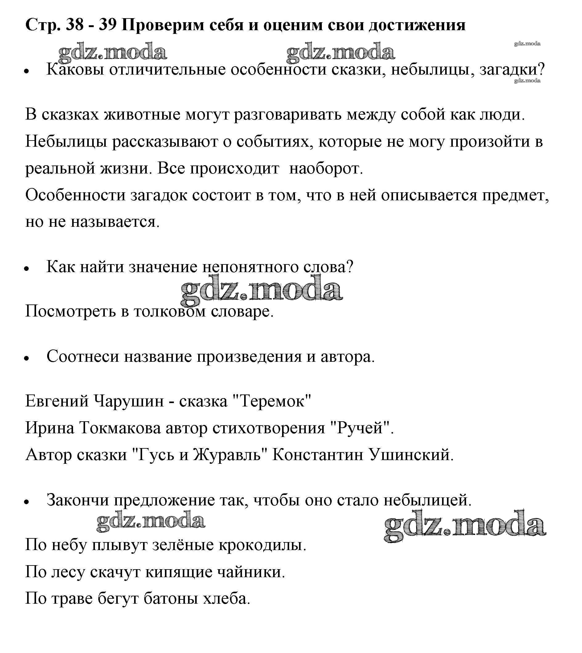 ГДЗ решение к заданию № 38-39 Литературное чтение 1 класс рабочая тетрадь Бойкина Просвещение 2017 ФГОС бесплатно на гдз.мода!