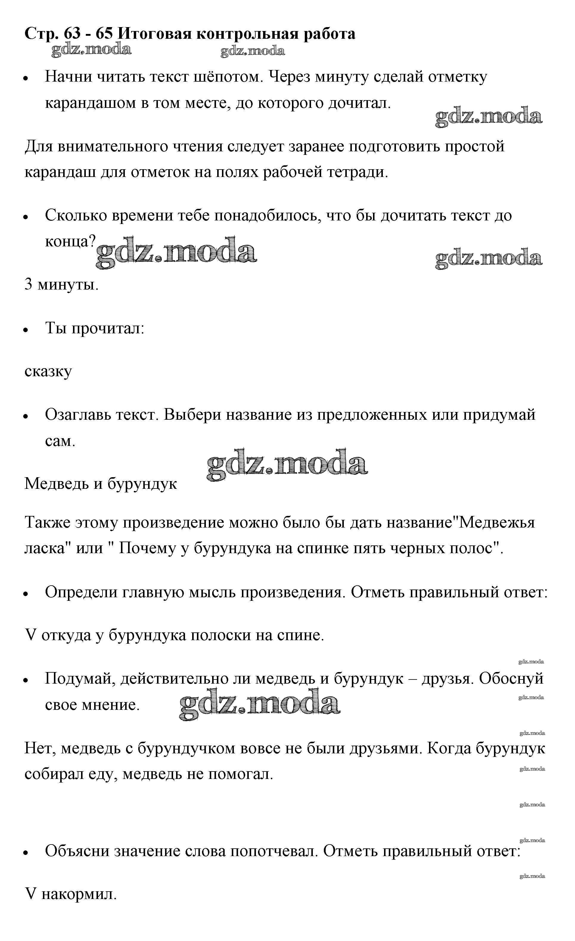 ГДЗ решение к заданию № 63-65 Литературное чтение 1 класс рабочая тетрадь Бойкина Просвещение 2017 ФГОС бесплатно на гдз.мода!