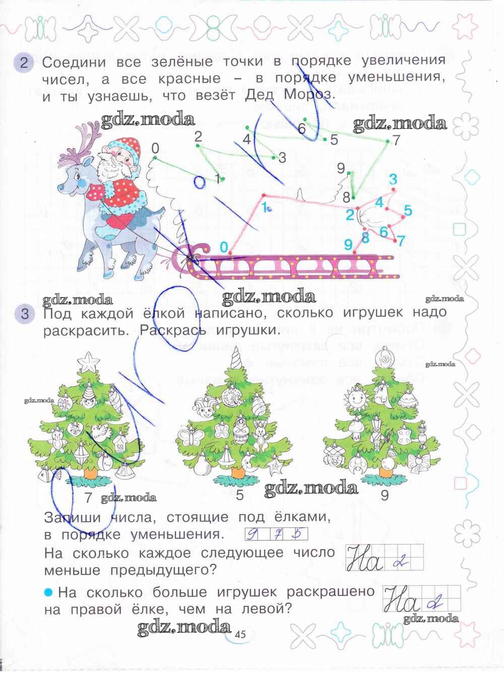 ГДЗ решение к заданию № 45 Математика 1 класс рабочая тетрадь Бененсон Е.П. Фёдоров 2015 Часть 1, Часть 2, Часть 3, Часть 4 ФГОС бесплатно на гдз.мода!