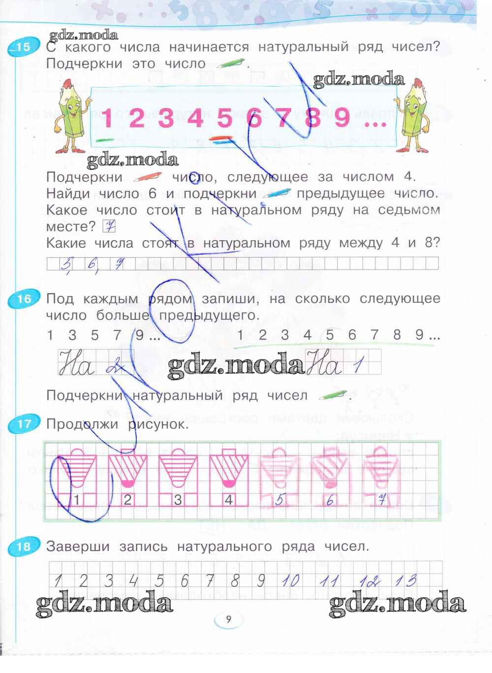 ГДЗ решение к заданию № 9 Математика 1 класс рабочая тетрадь Бененсон Е.П. Фёдоров 2015 Часть 1, Часть 2, Часть 3, Часть 4 ФГОС бесплатно на гдз.мода!