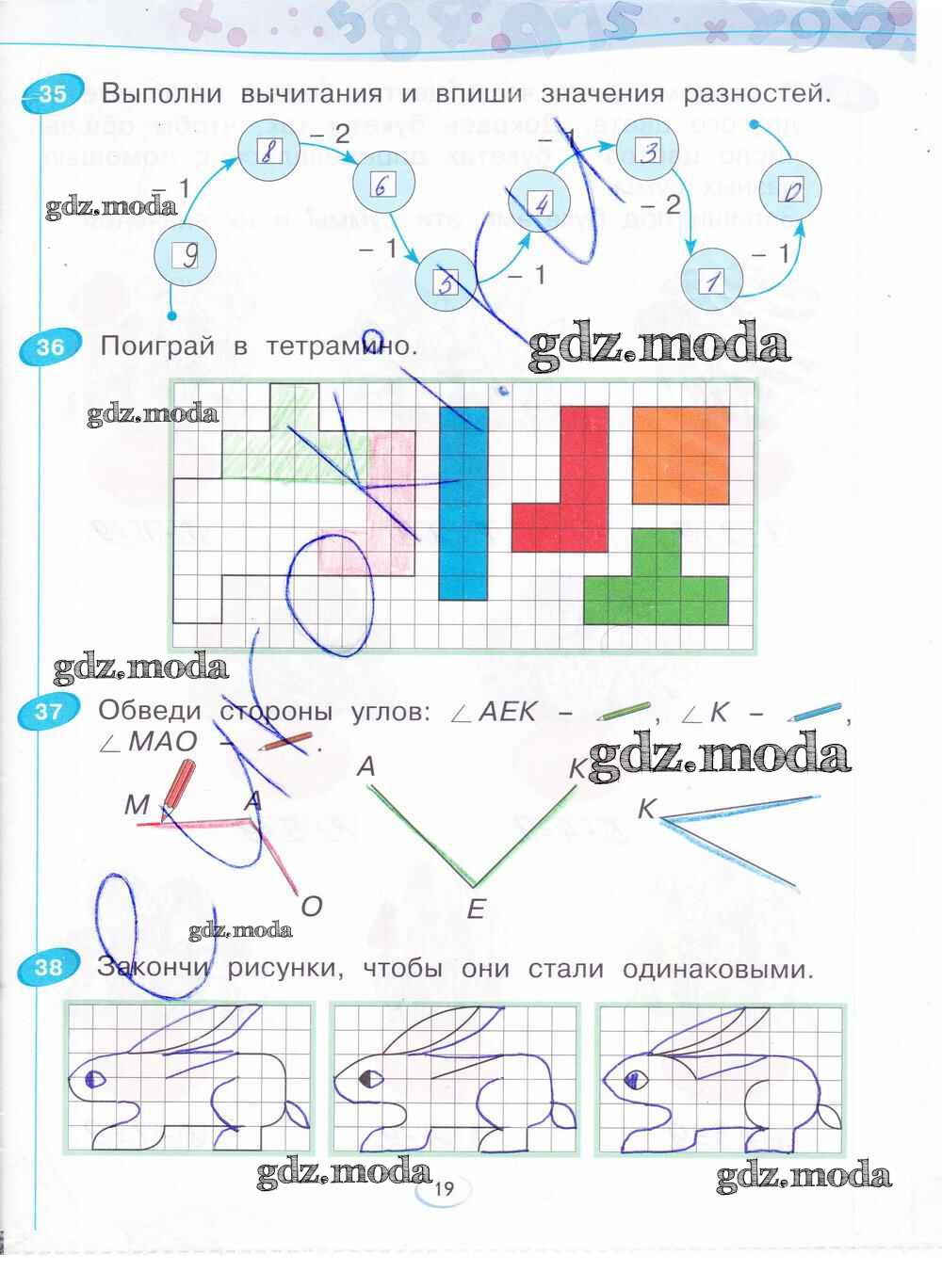 ГДЗ решение к заданию № 19 Математика 1 класс рабочая тетрадь Бененсон Е.П. Фёдоров 2015 Часть 1, Часть 2, Часть 3, Часть 4 ФГОС бесплатно на гдз.мода!