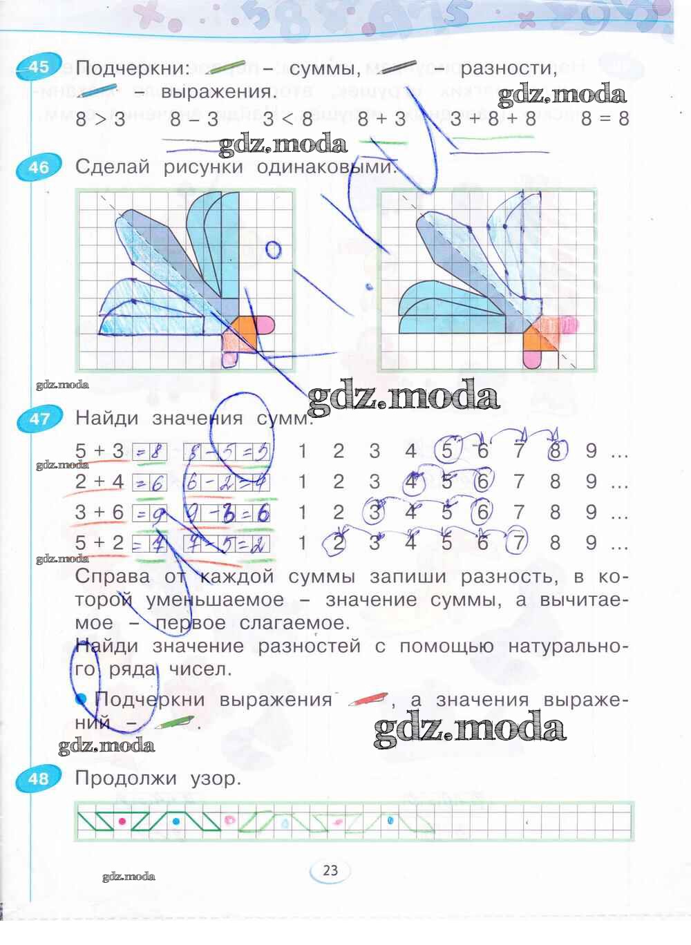ГДЗ решение к заданию № 23 Математика 1 класс рабочая тетрадь Бененсон Е.П. Фёдоров 2015 Часть 1, Часть 2, Часть 3, Часть 4 ФГОС бесплатно на гдз.мода!