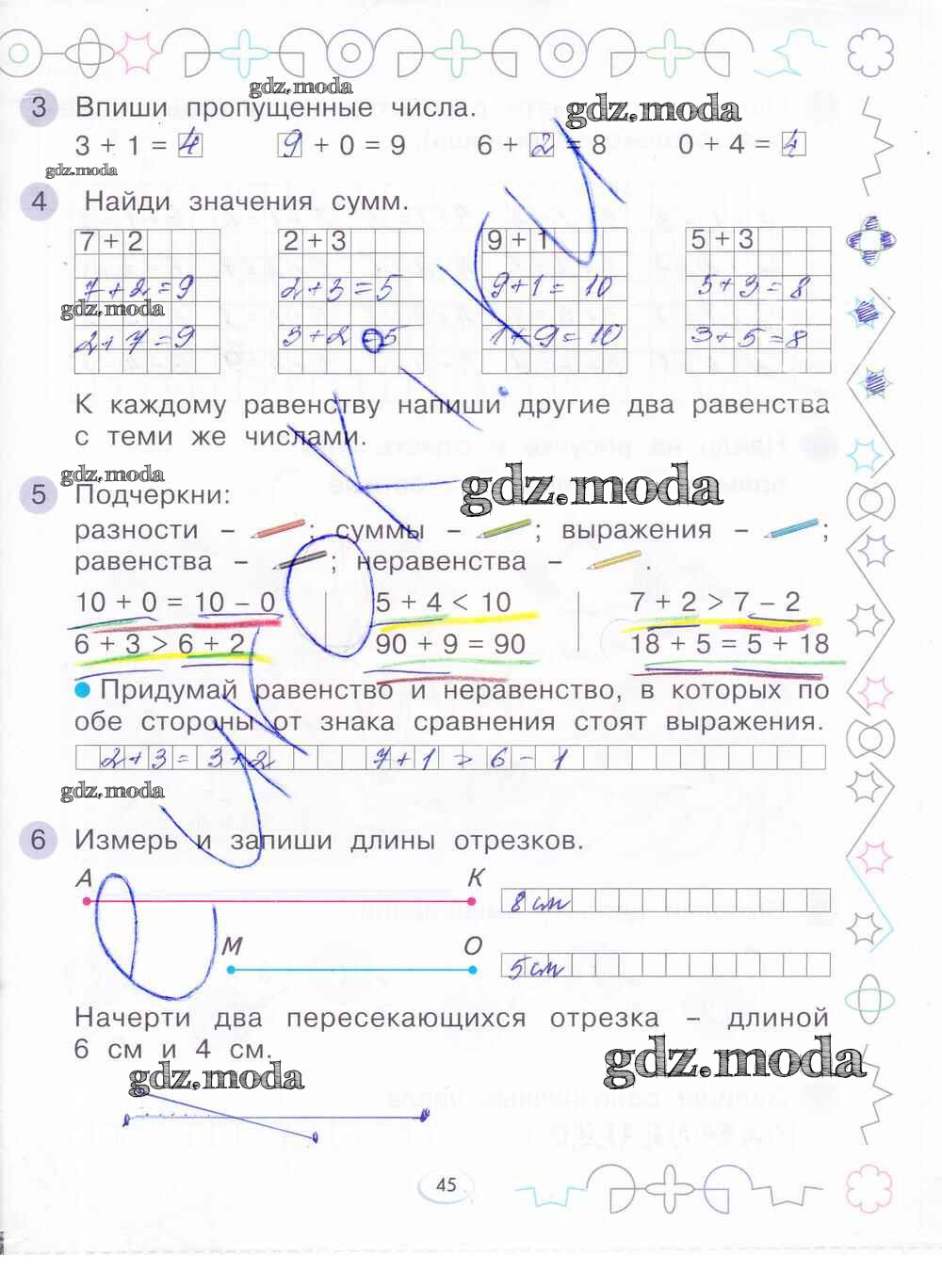 ГДЗ решение к заданию № 45 Математика 1 класс рабочая тетрадь Бененсон Е.П. Фёдоров 2015 Часть 1, Часть 2, Часть 3, Часть 4 ФГОС бесплатно на гдз.мода!