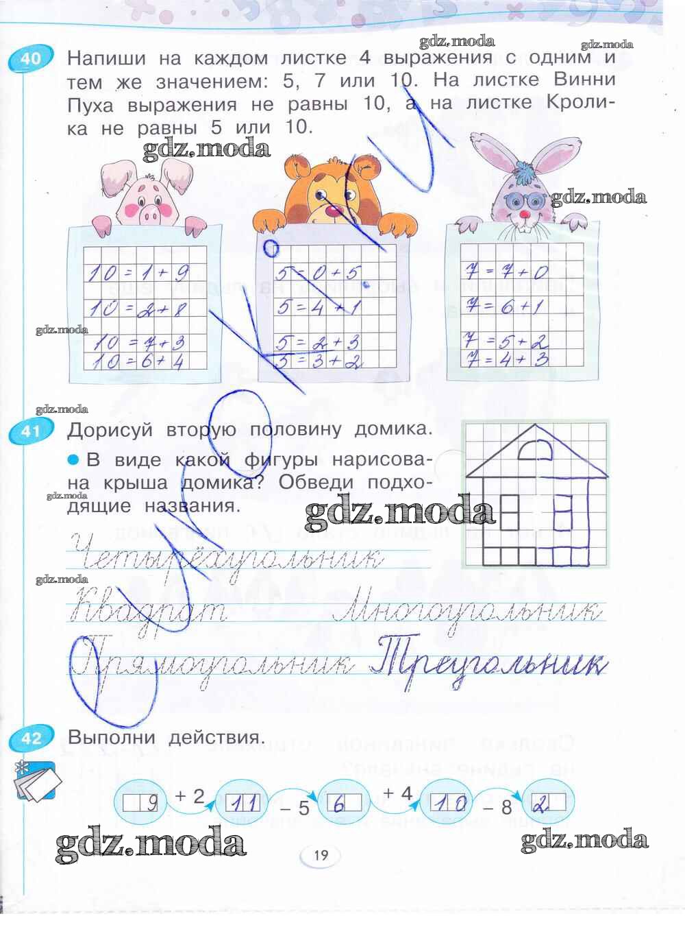 ГДЗ решение к заданию № 19 Математика 1 класс рабочая тетрадь Бененсон Е.П. Фёдоров 2015 Часть 1, Часть 2, Часть 3, Часть 4 ФГОС бесплатно на гдз.мода!