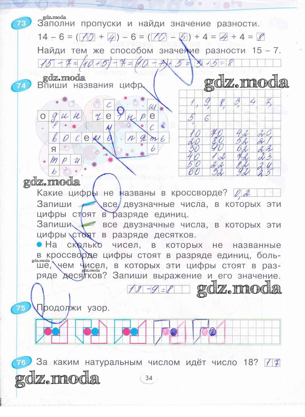 ГДЗ решение к заданию № 34 Математика 1 класс рабочая тетрадь Бененсон Е.П. Фёдоров 2015 Часть 1, Часть 2, Часть 3, Часть 4 ФГОС бесплатно на гдз.мода!