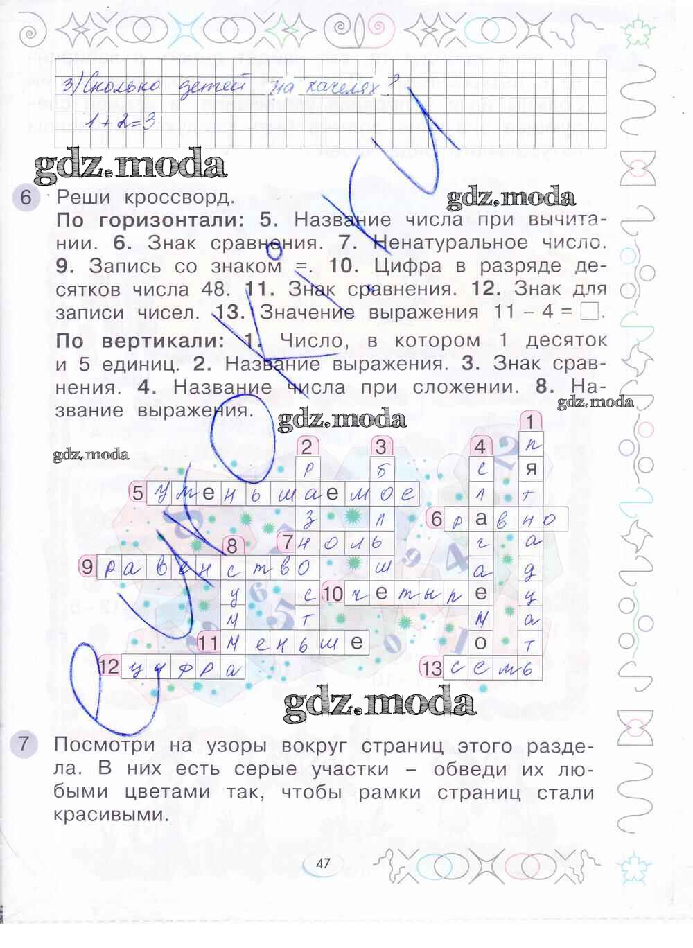 ГДЗ решение к заданию № 47 Математика 1 класс рабочая тетрадь Бененсон Е.П. Фёдоров 2015 Часть 1, Часть 2, Часть 3, Часть 4 ФГОС бесплатно на гдз.мода!