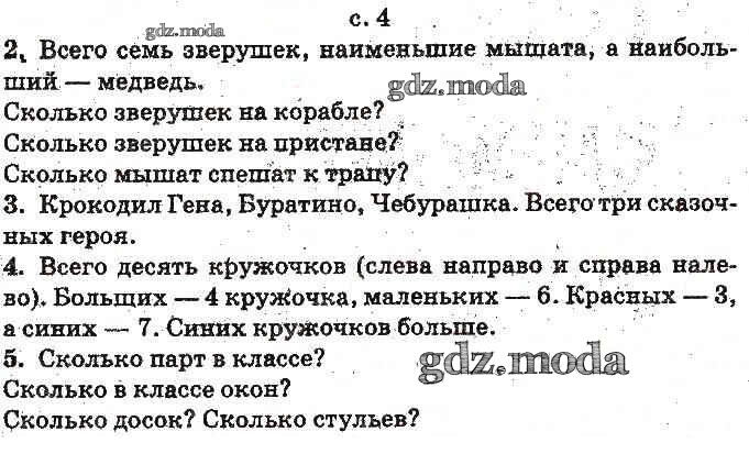 ОТВЕТ на задание № 4 Учебник по Математике 1 класс Богданович
