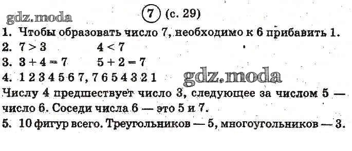 ОТВЕТ на задание № 29 Учебник по Математике 1 класс Богданович