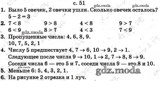ОТВЕТ на задание № 51 Учебник по Математике 1 класс Богданович