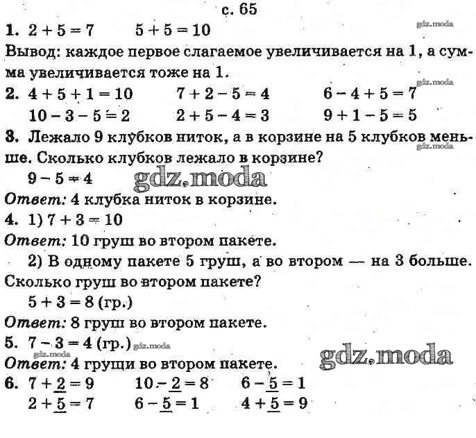 ГДЗ решение к заданию № 65 Математика 1 класс Богданович (учебник 2012) Генеза 2012 бесплатно на гдз.мода!