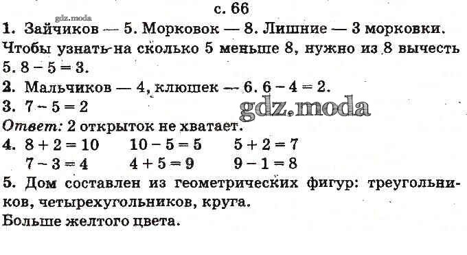 ОТВЕТ на задание № 66 Учебник по Математике 1 класс Богданович