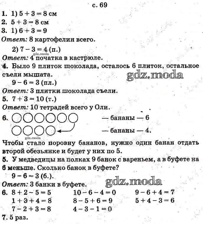 ОТВЕТ на задание № 69 Учебник по Математике 1 класс Богданович