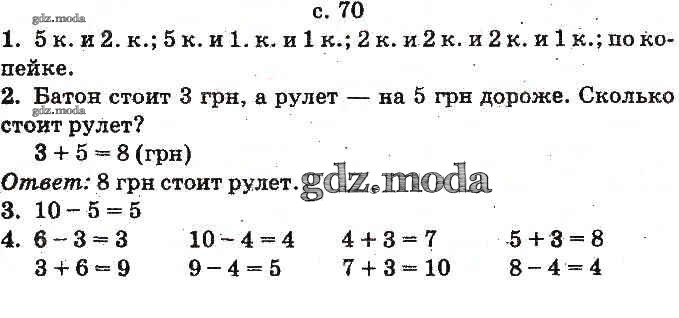 ГДЗ решение к заданию № 70 Математика 1 класс Богданович (учебник 2012) Генеза 2012 бесплатно на гдз.мода!