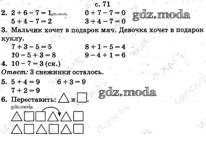 ОТВЕТ на задание № 71 Учебник по Математике 1 класс Богданович