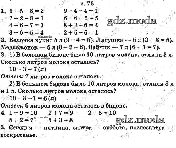 ОТВЕТ на задание № 76 Учебник по Математике 1 класс Богданович