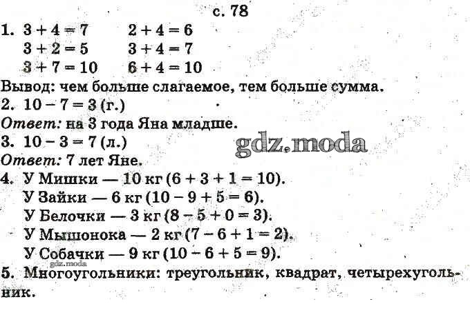 ОТВЕТ на задание № 78 Учебник по Математике 1 класс Богданович