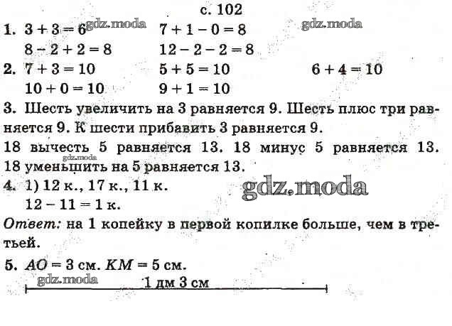 ГДЗ решение к заданию № 102 Математика 1 класс Богданович (учебник 2012) Генеза 2012 бесплатно на гдз.мода!