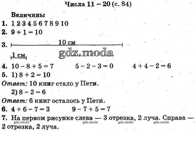 ОТВЕТ на задание № 84 Учебник по Математике 1 класс Богданович