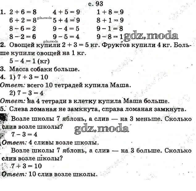 ОТВЕТ на задание № 93 Учебник по Математике 1 класс Богданович