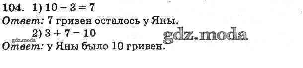 ГДЗ решение к заданию № 104 Математика 1 класс Богданович (учебник 2012) Генеза 2012 бесплатно на гдз.мода!
