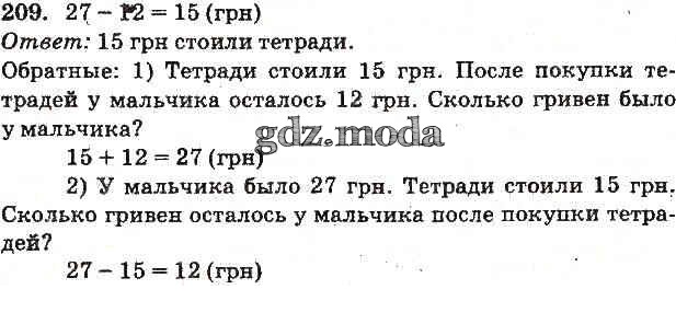 ГДЗ решение к заданию № 209 Математика 1 класс Богданович (учебник 2012) Генеза 2012 бесплатно на гдз.мода!